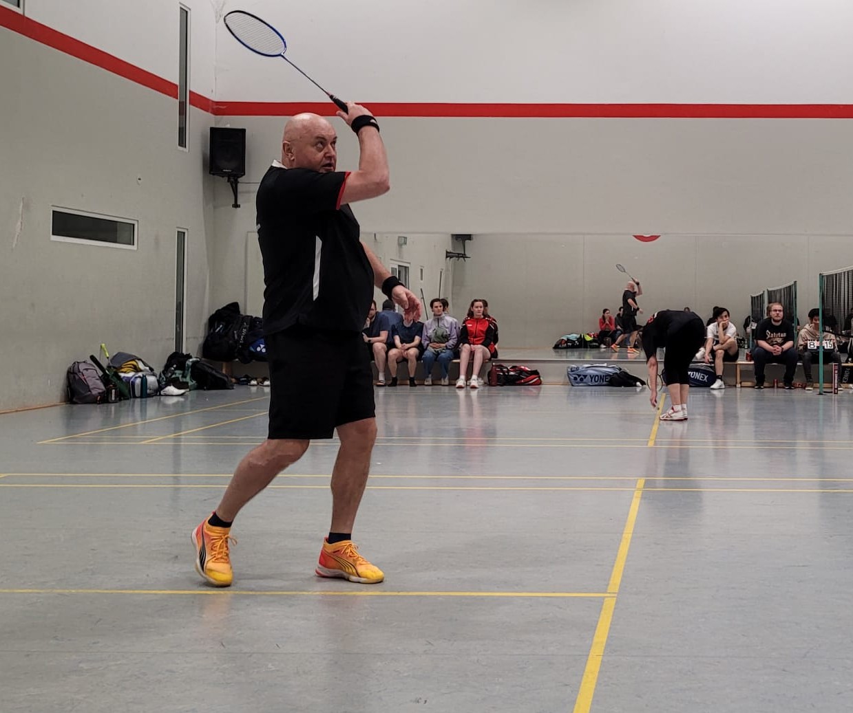 Das Abendspiel startete mit dem Damendoppel, Steffi und Silvia waren hier besser im Match, das Spiel ging aber an die Gastgeberinnen. Auch das 2. HE mit Nicolas holte sich der Karlsruher, beim 17-21 und 11-21 fand unser Kämpfer kein Rezept. Das 1. HD mit Michael und Sebbo war sehr umkämpft, nach einer starken Leistung und vergebenen Satzbällen ging der Punkt an die Gastgeber (22-24, 19-21). Erst im Abendspiel konnten wir unseren ersten Matchgewinn feiern, Daniel und Nicolas sicherten gekonnt das 2. HD mit 21-13 und 21-9. Im ungewohnten 3. HE ließ Thomas Klemm den nächsten Sieg folgen, beim 17-21, 21-15 und 21-9 spielte er seine ganze Routine aus. Auf etwas verlorenem Posten war Daniel im 1. HE, gegen einen sehr starken Gegner war für ihn nicht viel zu holen (9-21, 12-21). Auch im Abendspiel harmonierte das Mixed (Steffi/Michael) recht gut, das 18-21 und 14-21 war aller Ehren wert.