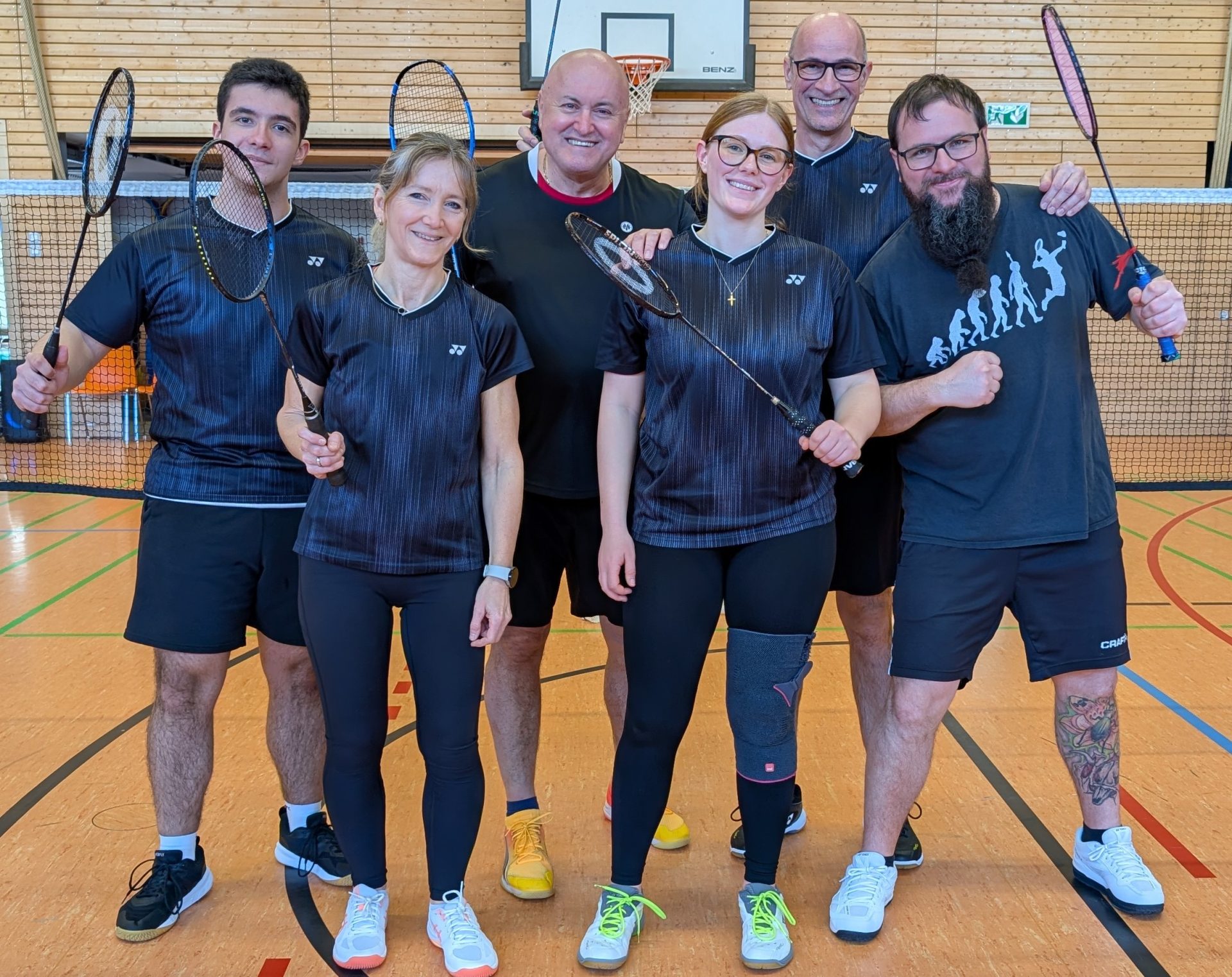 Beim Tabellenzweiten zogen wir uns achtbar aus der Affäre, wenngleich die sympathischen Gastgeber nicht ihre Männer-Bestbesetzung aufgeboten haben. Im Damendoppel machten die Gastgeber keine Kompromisse, gegen die starken Damen war für Steffi Wiedmann und Clara Busch trotz einer starken Leistung nicht viel zu holen (7-21, 10-21). Das 2. HD mit Michael Nawrath und Thomas Klemm holte den ersten Punkt, beim 21-15, 14-21 und 21-18 bogen sie im 3. Satz einen Rückstand noch gekonnt und mit guten Nerven um. Das 1. HD mit Nicolas Schmitt und Daniel Schäfer hatte nach verlorenem 1. Satz einen besseren Matchplan, mit 16-21, 21-8 und 21-10 gewannen sie letztlich souverän. Im 3. HE kam Thomas im zweiten Satz gut ins Match, für den Entscheidungssatz hat es leider nicht gereicht (11-21, 19-21), Daniel scheiterte im Spitzeneinzel an der starken Technik seines Kontrahenten. Nico sorgte aber postwendend für den 3:3 Ausgleich, unser Kämpfer war beim 21-14 und 21-17 wieder einmal der dynamischere Spieler. Ein Topmatch zeigte auch Clara im Einzel, gegen eine sehr starke Gegnerin schlug sie sich richtig gut und zeigte dabei viele sehenswerte Ballwechsel. Für den Punktgewinn hat es am Ende nicht gereicht, das Mixed mit Steffi und Michael war beim 12-21 und 14-21 gegen die starken Gastgeber nur zweiter Sieger.